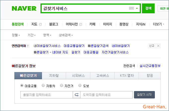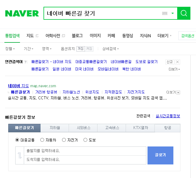 여기저기 경로 안내 서비스들이 있겠지만 저는 주로 네이버의 빠른길찾기 서비스를 제일 걸핏하면 이용하고 있다고 합니다.