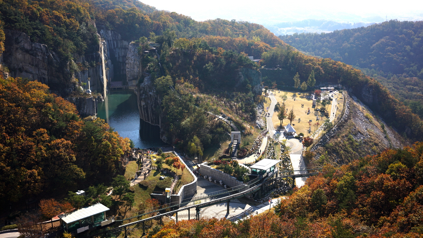 그림 같은 에메랄드 호수 및 화강암 절벽이 병풍과 나란히 보이는 자연 속에서 예술을 관조하고 만끽할 수 있는 문화예술의 융합공간인 포천 아트밸리는 1990년대까지 버려진 채석장이었으나 지금은 자연과 예술이 병립하는 힐링 공간으로 변신해 연간 40만 명이 찾고 있는 관광지 이고요.