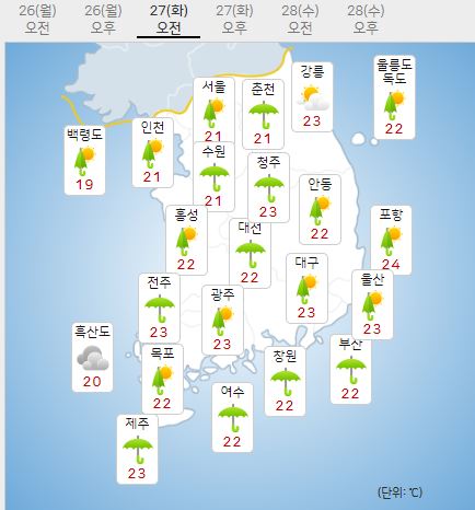 기상청에 기초하면, 오는 27일까지 전국 거의의 지역에서 돌풍과 천둥·번개를 동행한 시간당 20~40mm의 상당히 강한 비가 내리는 곳이 있을 것으로 내다보이고 있어, 사전에 피해가 없도록 엄격한 대비가 필요할 것으로 보이죠.