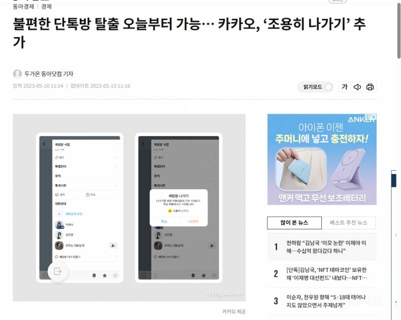 이번 채팅방 조용히 나가기 기능 추가해서는 카카오의 '카톡이지'프로젝트의 연결된것으로 발전되고 있어요. 유저의 대화 스트레스, 부담을 줄이며 일상 속에서 편익을 상향시켜주는 데 초점을 맞춘 프로젝트이라고 합니다. 아무라도 장벽없이 안전하게 카카오톡을 사용하게수 있도록록 신규 기능을 추가하고, 기존 기능을 개선하는 것을 목표로 하였으있습니다.