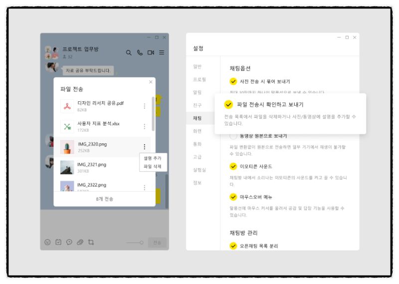 윈도우 PC 버전 카톡 채팅방 조용히 나가기