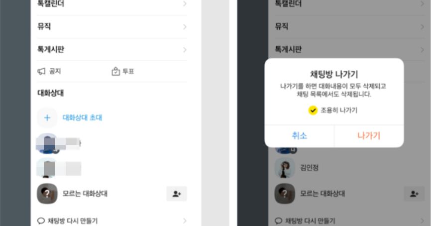 카톡 채팅방 조용히 나가기 설정 방법