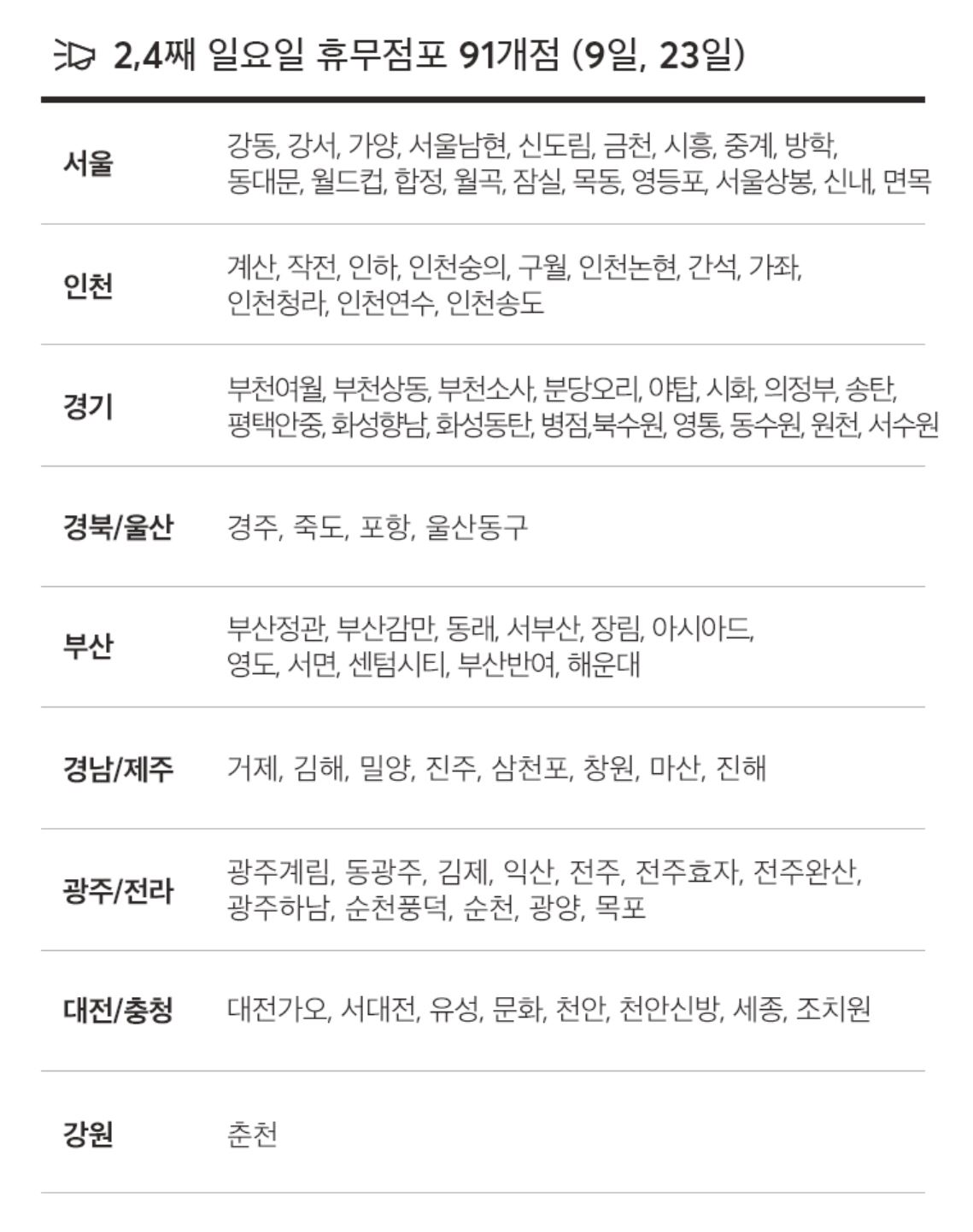 홈플러스 휴무일 7월 9일, 7월 23일 휴무 매장