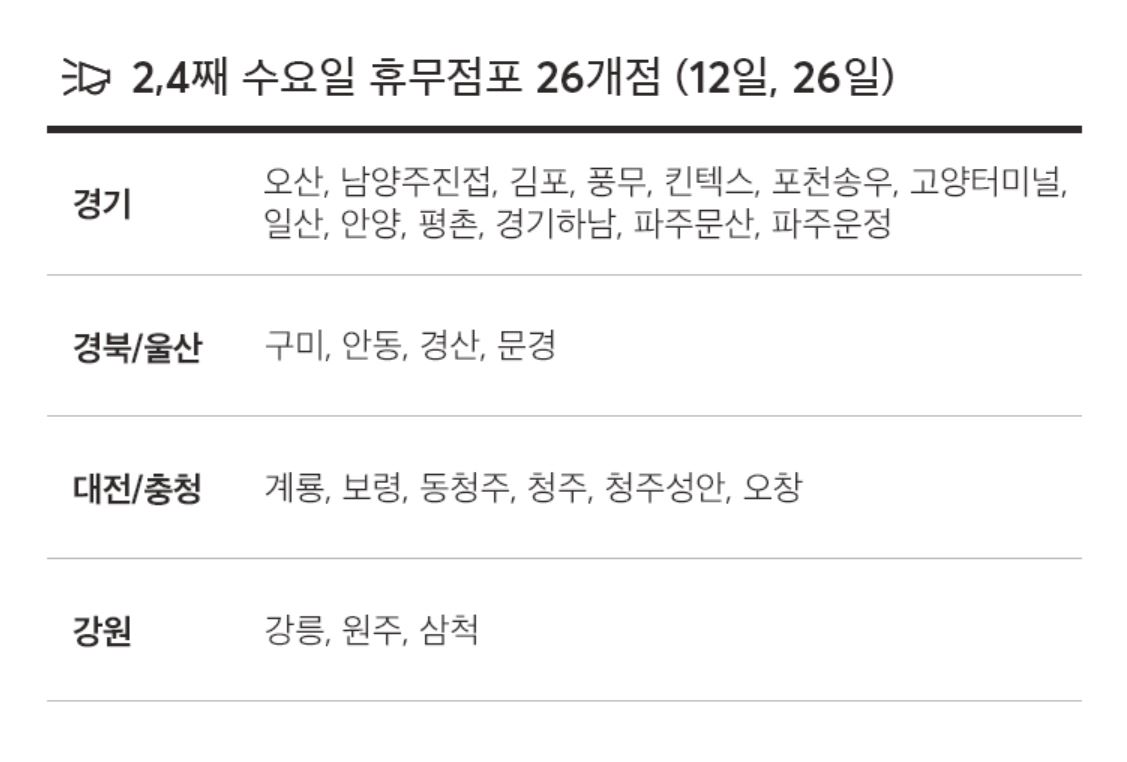 홈플러스 휴무일 7월 12일, 7월 26일 휴무 매장