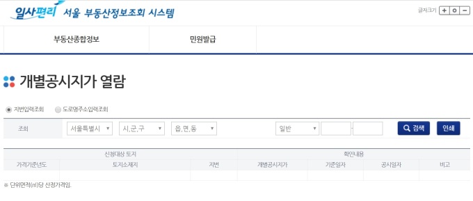 개별공시지가 조회는 홈페이지 → 개별공시지가 열람 → 원하는 곳의 주소 선택 → 검색을 눌러준답니다 이렇게형식으로 하면 기준일자, 공시일자, 개별공시지가등을 확인하실수있죠.