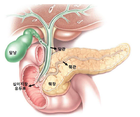 총담관은 간으로부터 나오는 총 간관과 쓸개에서 나오는 쓸개관이 추가되어 출현한 쓸개즙의 이동 통로를 의미하는데 총담관은 췌장 머리 주변이에 위치해 있어 췌장 머리 부분부터 췌장 전체까지 퍼진 암이 총담관에 압력을 가하기에 황달 증상이 생길 수도 있고요.