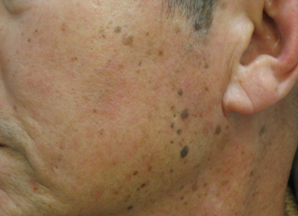 검버섯은 중년 이상의 인간에게서 체크할 수 있기도하고, 일생 동안 오랜 기간 햇빛에 피부를 노출시킨 것이 검버섯이 생기는 원인으로 알려져 있고요. 이를 뒷받침하듯, 검버섯은 보통 때에 자외선 노출이 많은 손등, 얼굴, 가슴, 어깨, 종아리 등에 보통은 생깁니다.